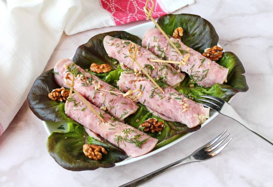 Рулетики из ветчины с сыром — простая и очень вкусная закуска, которая готовится очень быстро. А чтобы разнообразить их, добавьте в начинку грецкие орехи. Берите идею на вооружение!