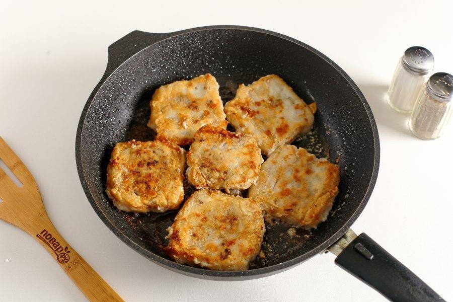 Обваляйте филе в муке и обжарьте в сковороде с двух сторон до золотистого цвета.