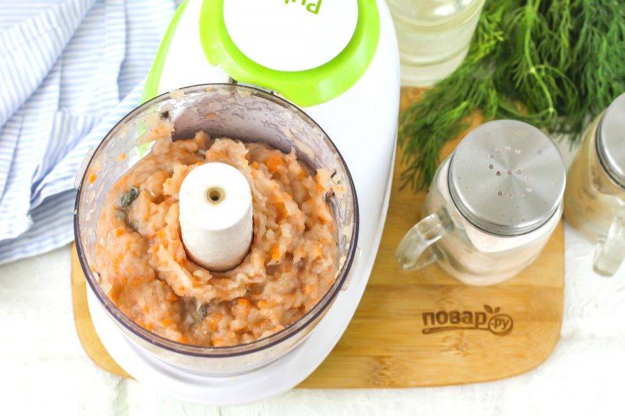 Перебейте нарезки в фарш примерно 3-4 минуты.