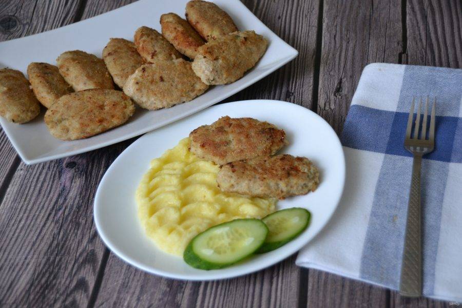 Сформуйте котлеты, обваляйте в панировочных сухарях, обжарьте на растительном масле со всех сторон.