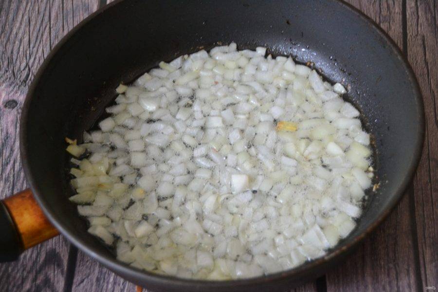 Мелко нарежьте лук и обжарьте его на смеси растительного и сливочного масла.