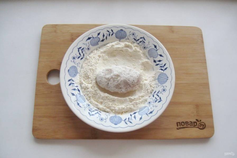 Перемешайте муку с куркумой. Из фарша сформируйте котлеты и обваляйте в смеси муки с куркумой.