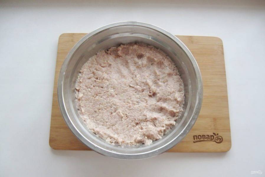 Тщательно перемешайте рыбный фарш до однородной консистенции.