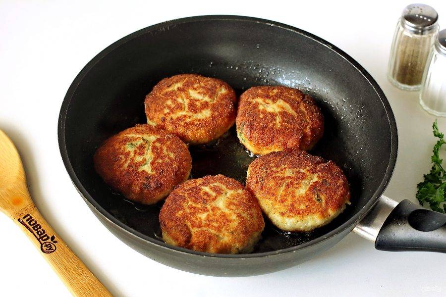 Обжарьте котлеты на сильном огне до румяной корочки, затем накройте крышкой и на медленном огне потомите с небольшим количеством воды до полного ее выкипания.