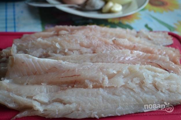 У рыбы отрезаем плавники, хвост, филируем ее и снимаем кожу. Можно использовать уже готовое рыбное филе.
