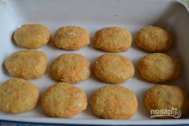 Отправляем форму с рыбными котлетами в разогретую до 180 градусов духовку на 20 минут.