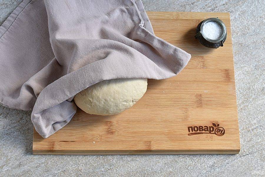Вымесите хорошенько тесто и дайте отдохнуть полчаса, накрыв влажным полотенцем.