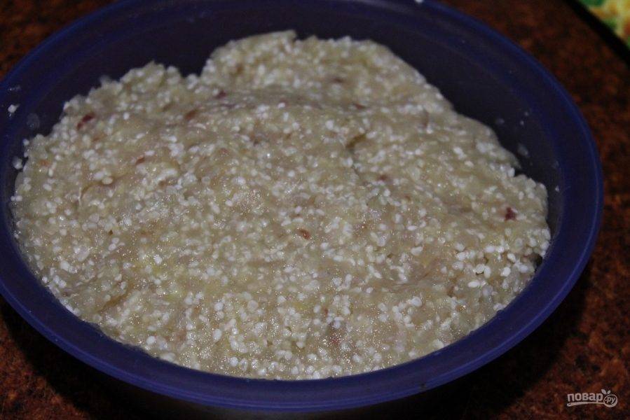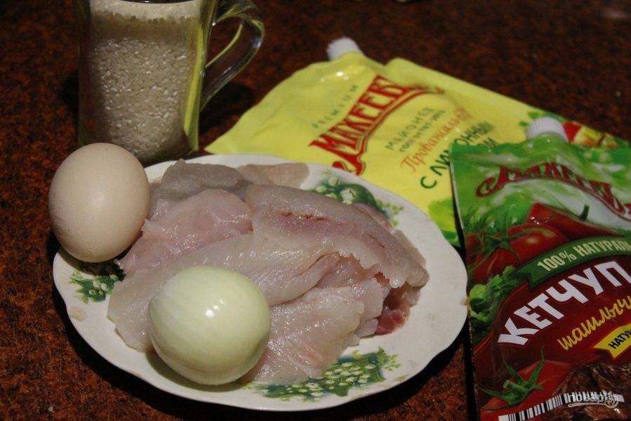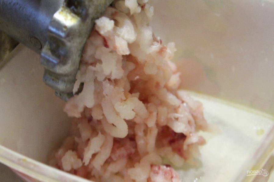 Рыбное филе пропустите 2 раза через мясорубку. Лук пропустите через мясорубку.