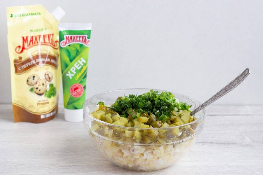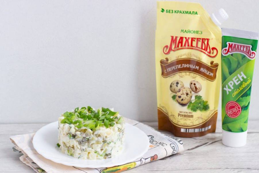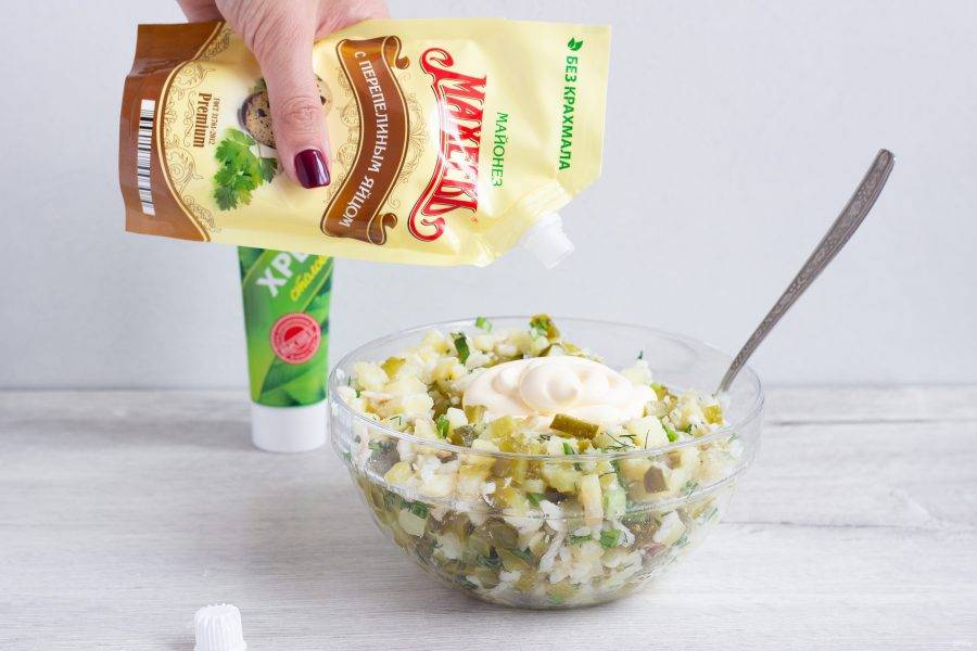 Всё тщательно перемешайте и заправьте майонезом Махеевъ.