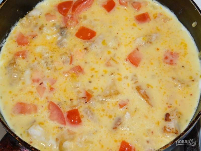 Залейте все яичной смесью и накройте крышкой. Готовьте на маленьком огне до готовности (4-6 минут).