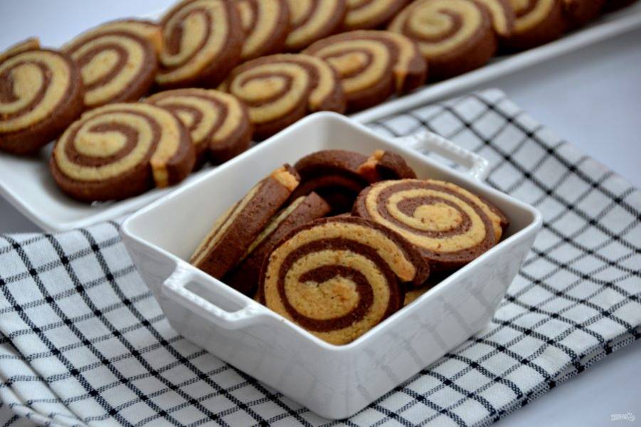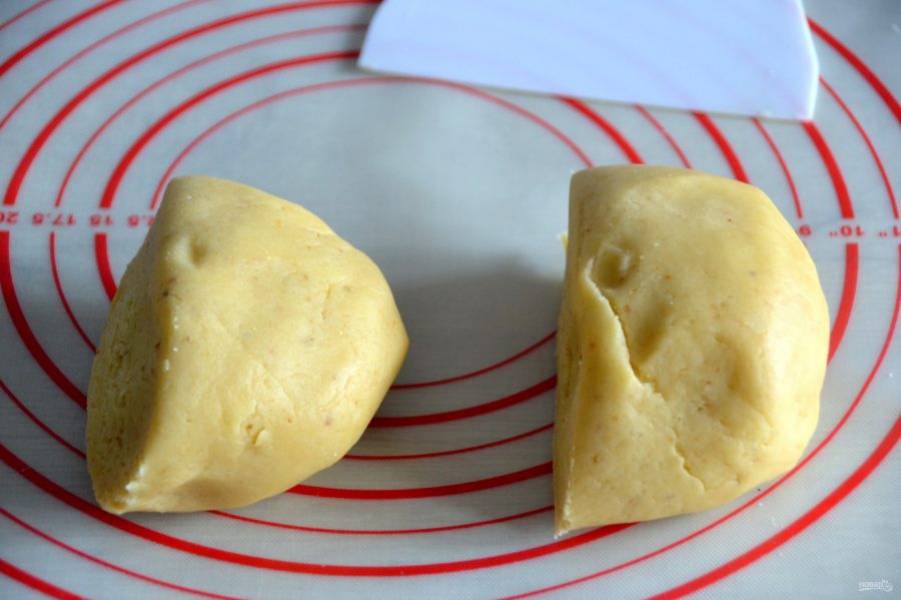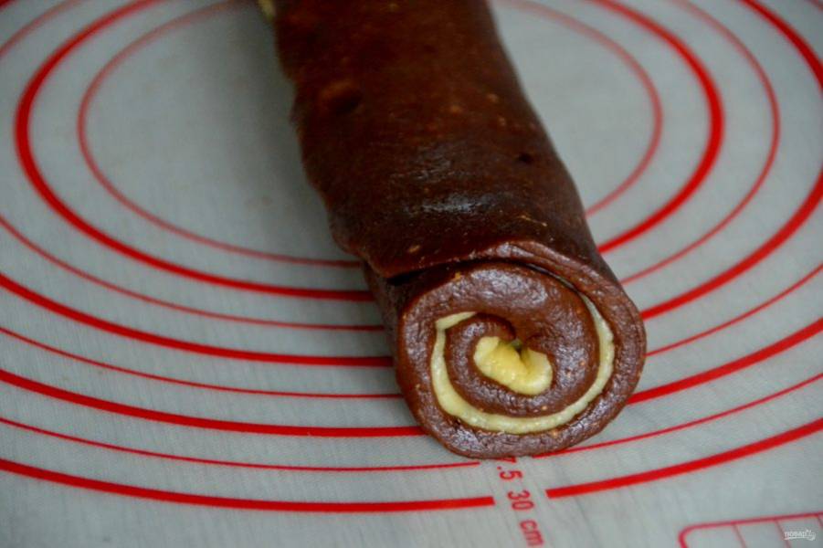 Аккуратно сверните оба пласта теста в рулет, заверните в пищевую пленку и уберите в морозильную камеру на 40-60 минут.