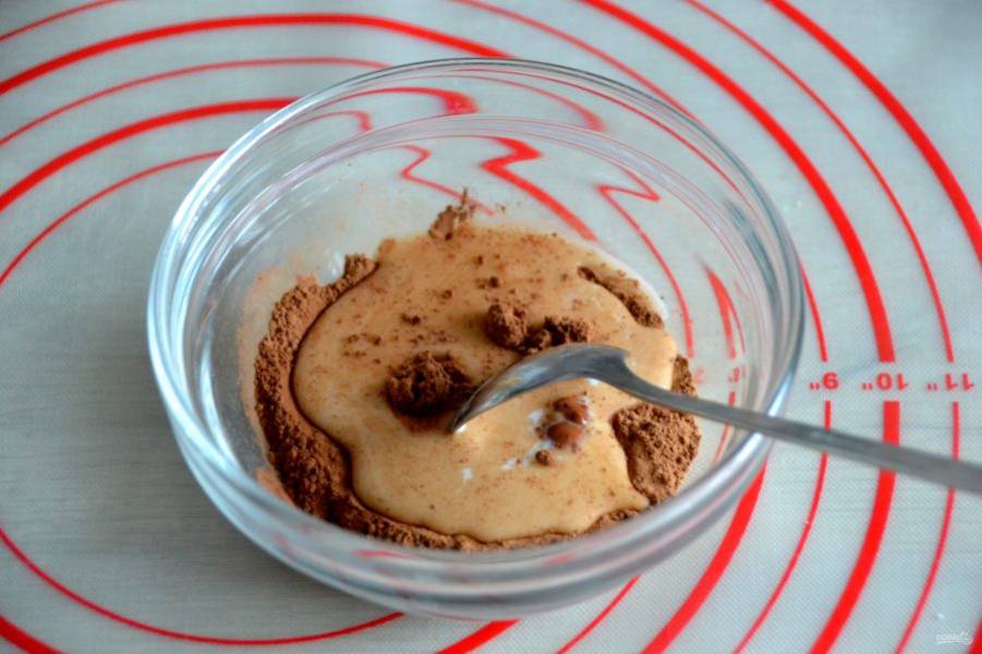 Смешайте 2 ст. ложки молока и какао-порошка.