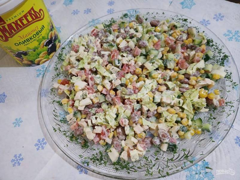 Салат перемешайте перед тем, как будете кушать.