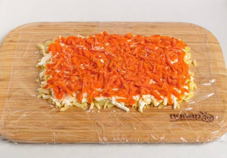 3 слой: натертая вареная морковь и майонез.
