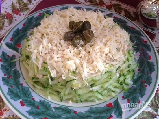 И украшаем салат. Я сделала вот такой вариант, а вы фантазируйте и создавайте свой шедевр.