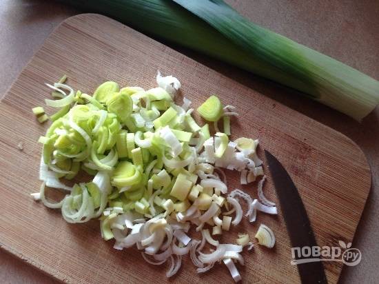 Нарезаем лук-порей.