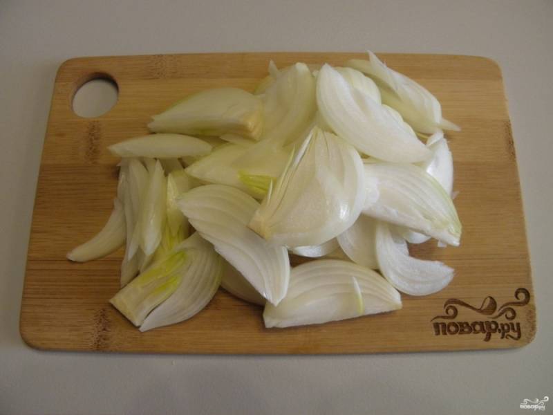 Репчатый лук порежьте тонкими полукольцами.