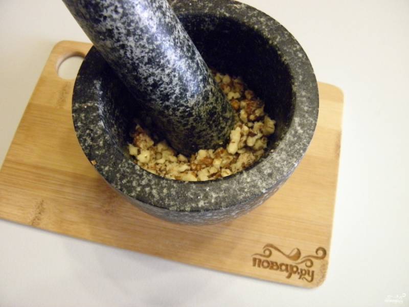 Орехи растолките в ступке или порубите мелко ножом.