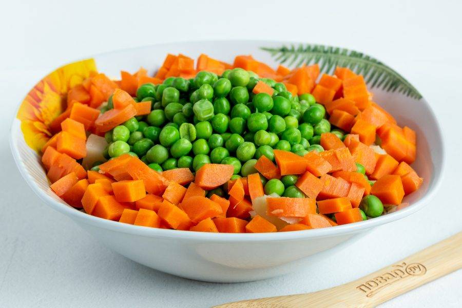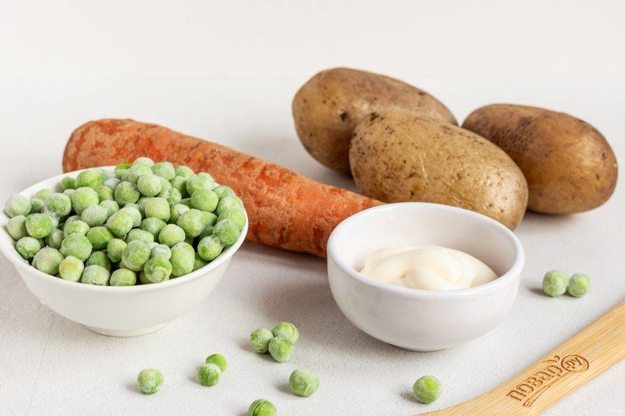 Подготовьте все необходимые ингредиенты. Картофель и морковь заранее отварите в подсоленной по вкусу воде.
