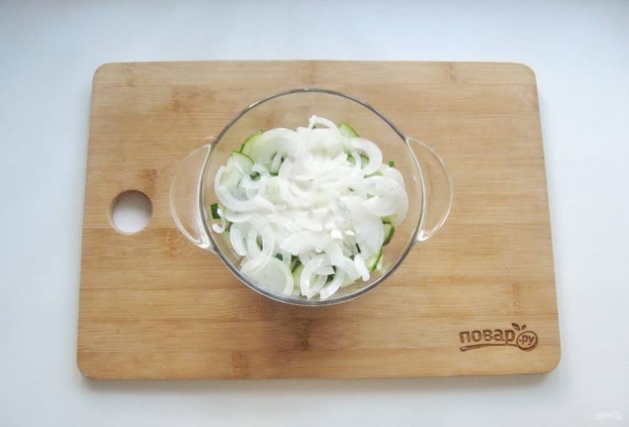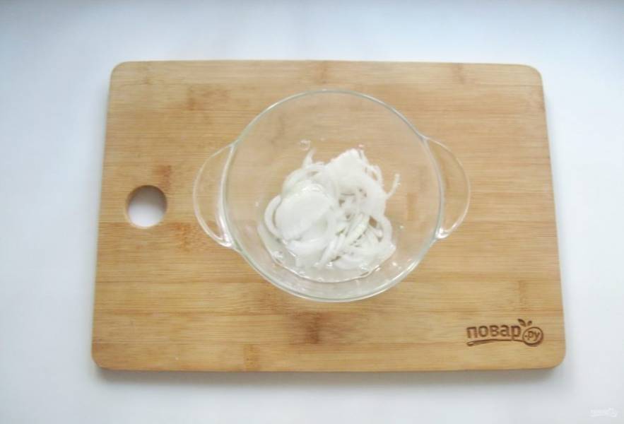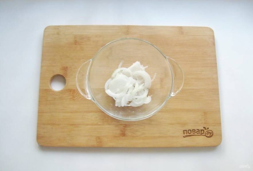 Репчатый лук нарежьте и выложите в миску.