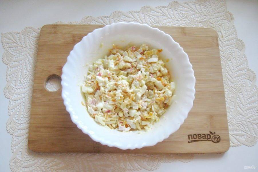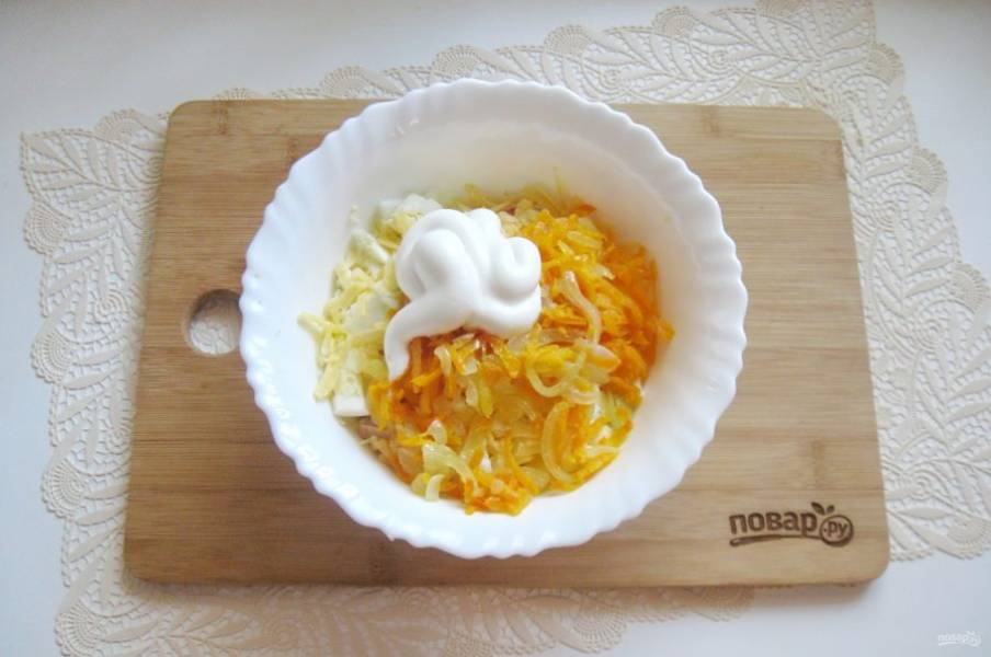 Салат заправьте майонезом.