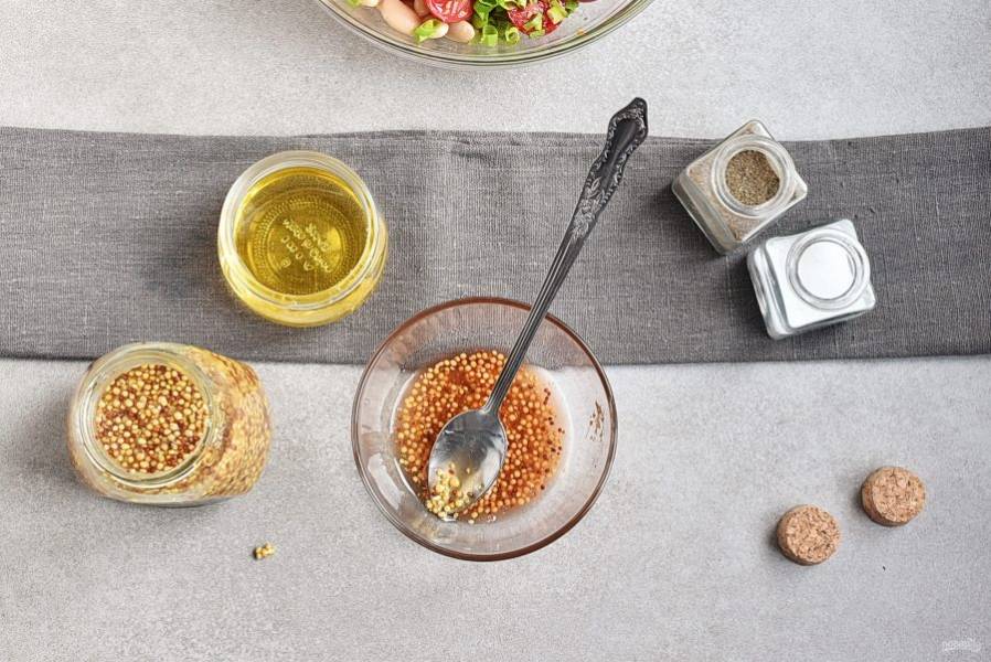 Соедините компоненты заправки и хорошо взбейте вилкой.