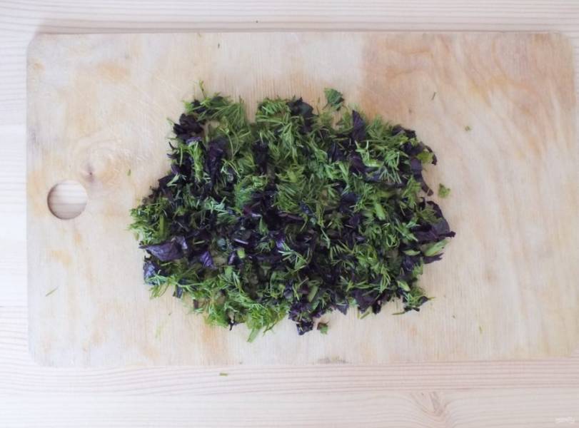 Нарежьте мелко укроп и базилик.