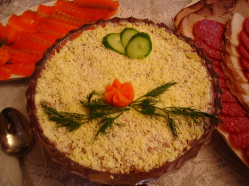 Этот салат стал известным достаточно давно. Он очень вкусный и сытный, а также идеально подходит для праздничного стола. Готовить его можно из любого мяса по вашему вкусу. В данном рецепте - говядина.