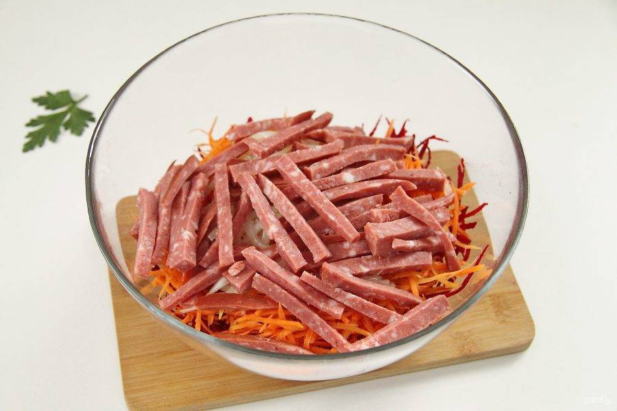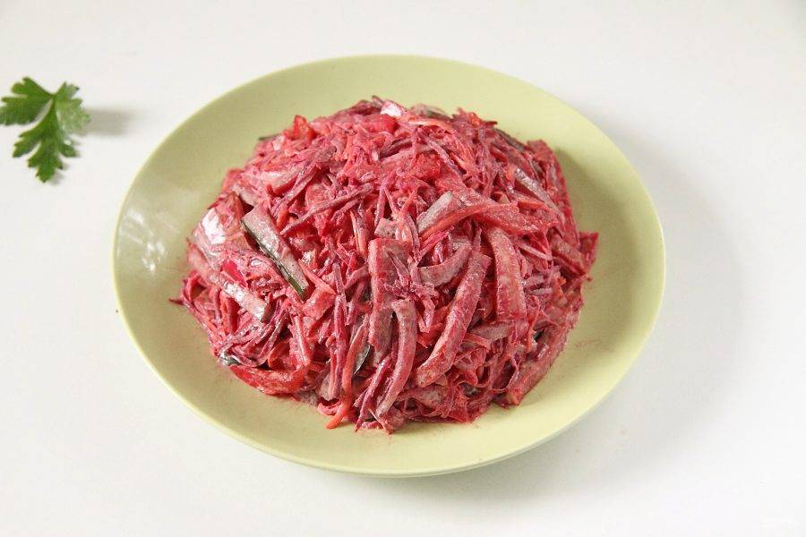 Вкусный и эффектный салат для праздничного стола. Готовить его не очень просто, так как процесс состоит из нескольких этапов, но затраченное время того стоит. Попробуйте!