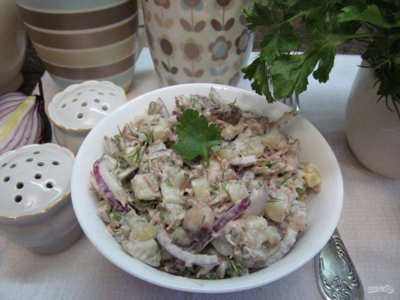 Салат перемешайте и подавайте к столу.