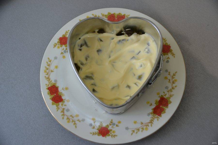 Далее смажьте майонезом.