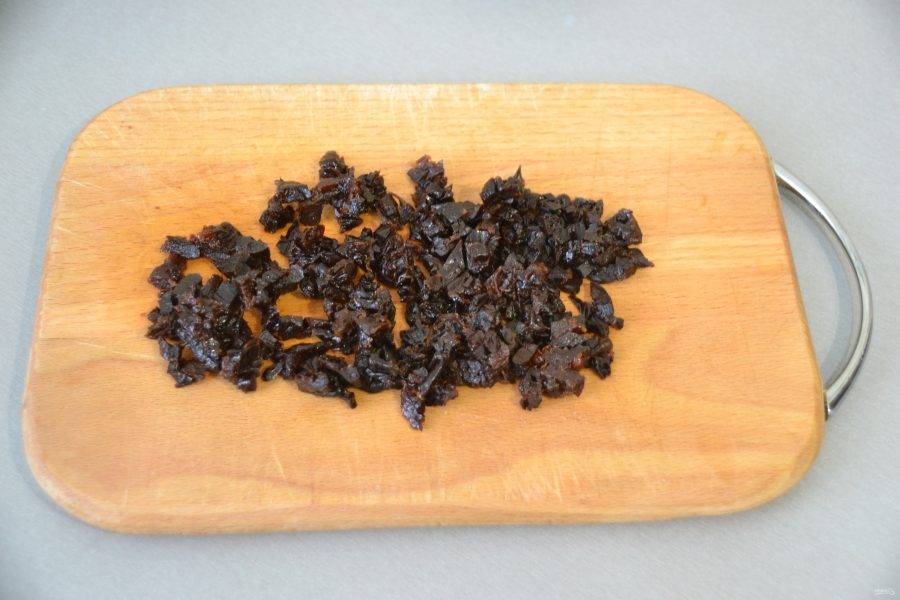 Мелко нарежьте чернослив.