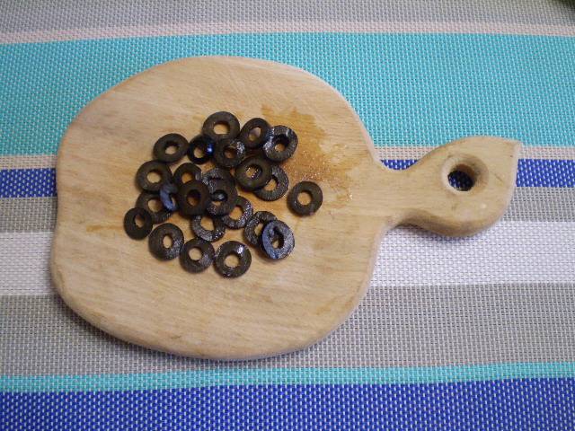 12. Кружочки маслин формируем в цветы, петрушкой делаем стебли, украшаем серединки цветов кусочками вареной моркови. Салат готов. Время пропитки 10 минут. Приятного!