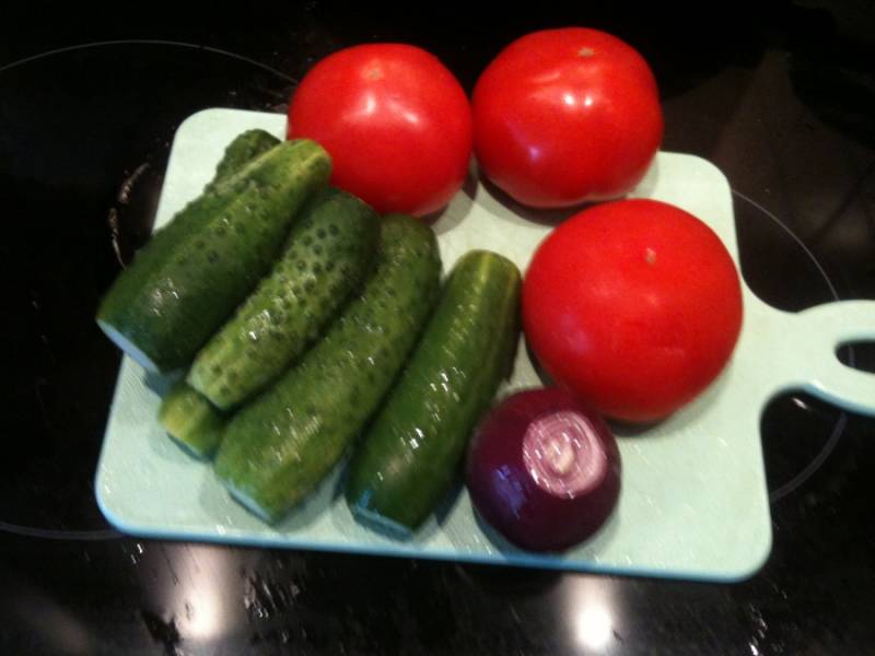 Летом, отдыхая на даче, постоянно готовлю этот салат. Все ингредиенты срываю прямо с грядки. Вкуснее любых диковинных деликатесов.