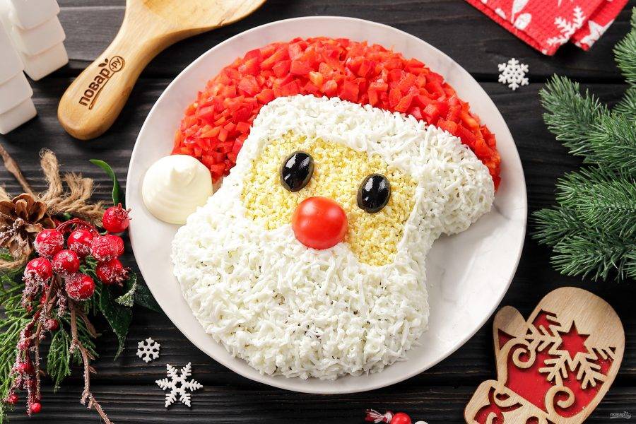 Салат «Дед Мороз-Красный нос» готов. Всем приятного аппетита и с наступающим Новым годом!