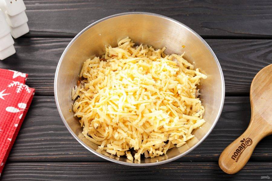 Сыр натрите на крупной тёрке.