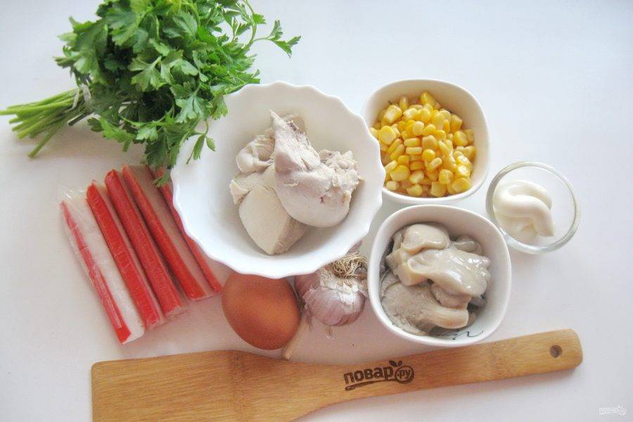 Предлагаю рецепт отличного салата. В нем крабовые палочки хорошо сочетаются с отварной куриной грудкой, создавая иллюзию натурального крабового мяса.