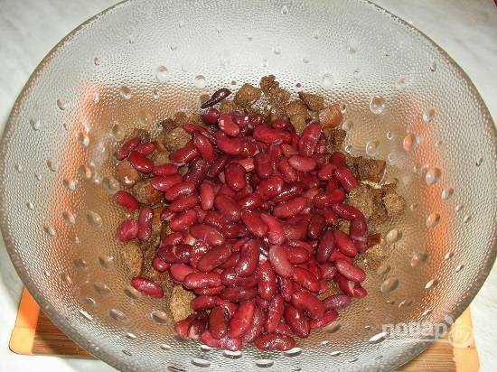 Добавляем консервированную фасоль, слив с нее жидкость.