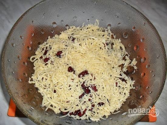 Теперь добавим сыр, натертый на средней или крупной терке.