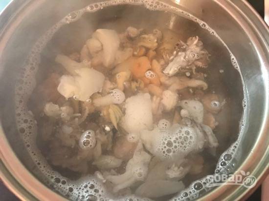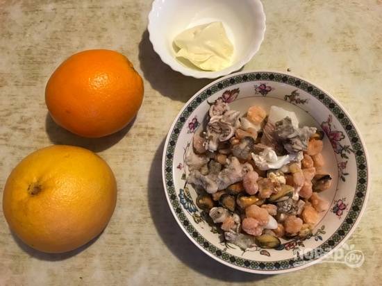 2. Вскипятите воду, слегка подсолите и отварите морепродукты. Отваривайте не более 5 минут.