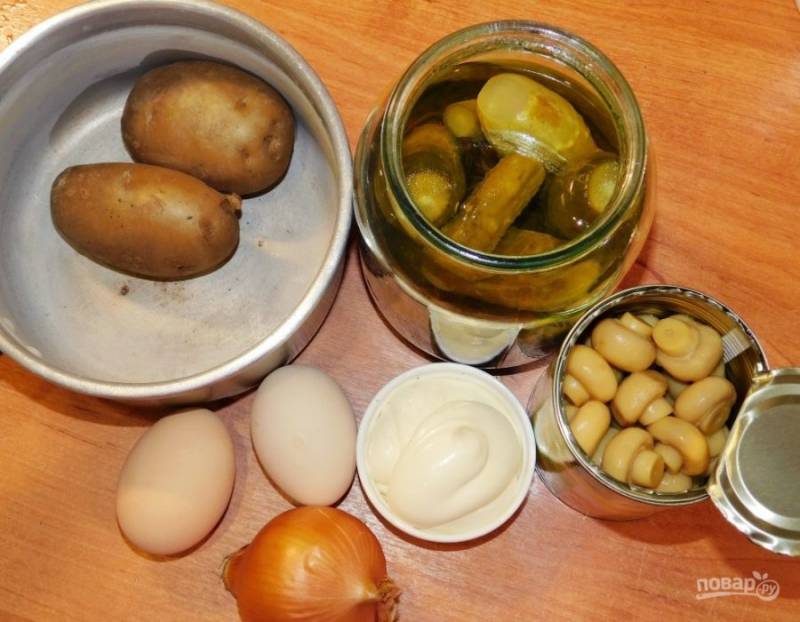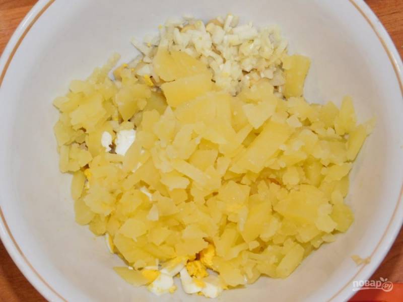 Подготовьте все необходимые ингредиенты. Отварите яйца и картофель в мундире.