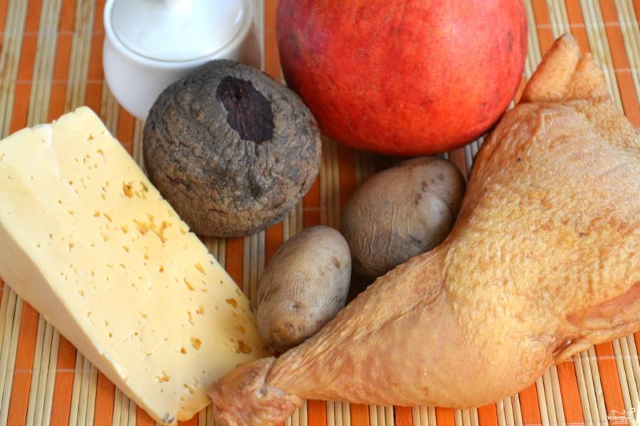 Подготовьте все необходимые ингредиенты, отварите заранее картофель и свеклу.
