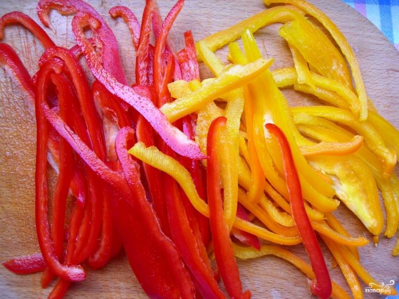 - Болгарский перец 1 штука 1/2 красного и 1/2 желтого перцев