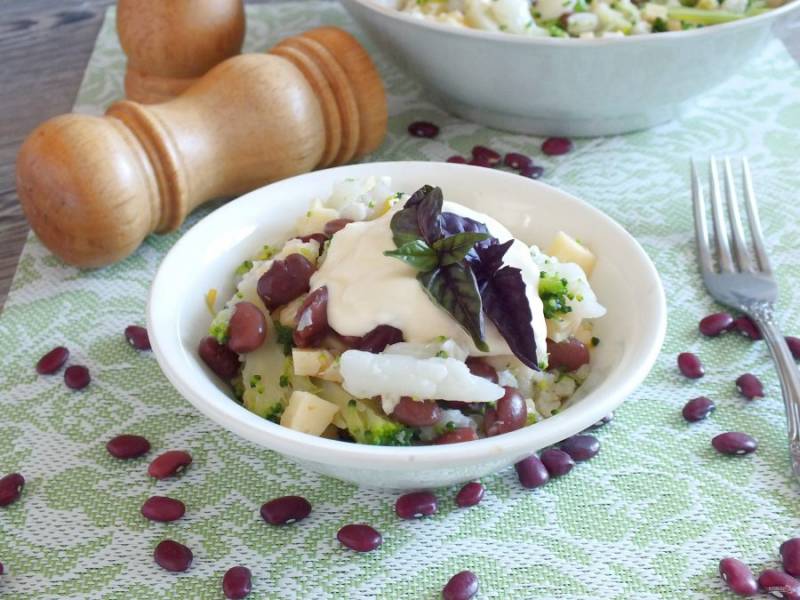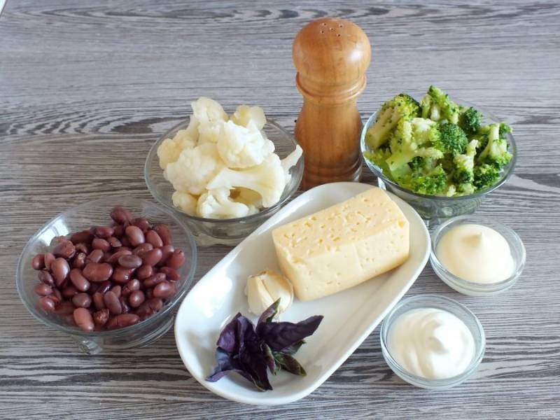 Для легкого ужина или перекуса предлагаю простой и вкусный салат из брокколи, цветной капустой и фасоли. Фасоль для салата можно взять как отварную, так и консервированную. Берите рецепт на заметку!