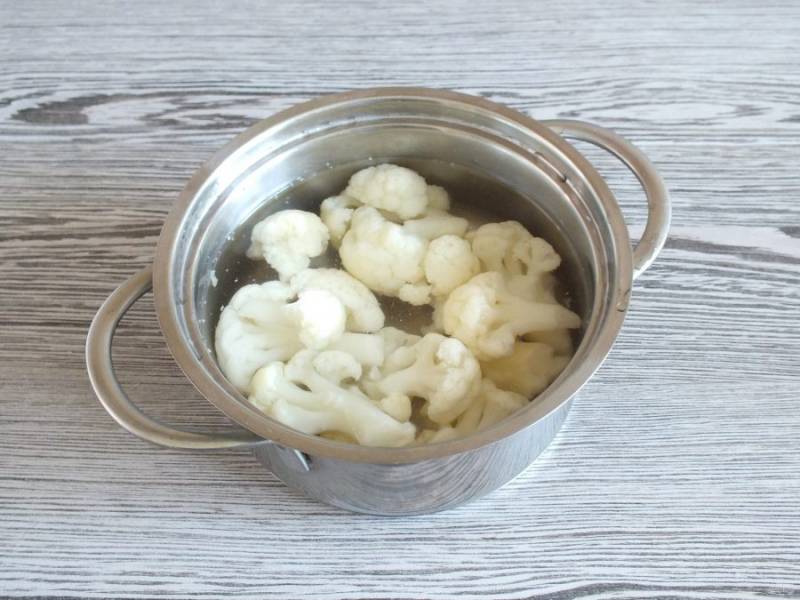 Цветную капусту отварите в течение 3-5 минут после закипания.