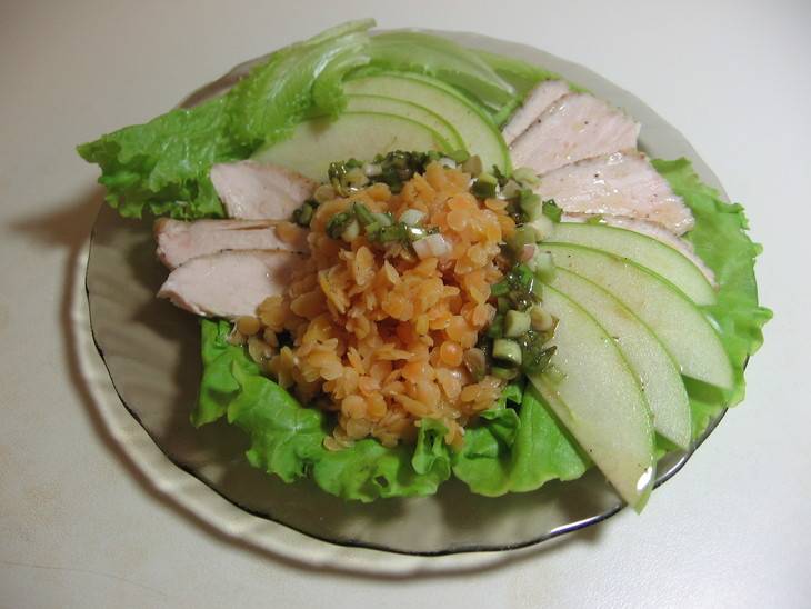 Перед вами - простой рецепт приготовления салата из чечевицы с мясом. В таком салате много белка, он - сытный, вкусный и оригинальный. Приготовьте его в качестве основного блюда на семейный ужин.