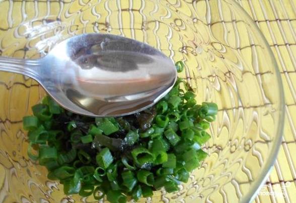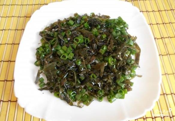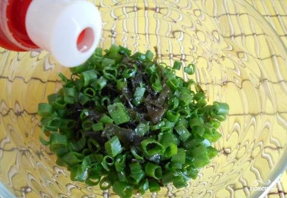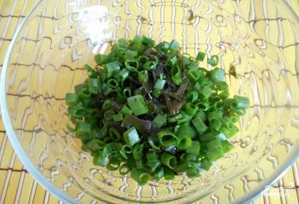 2. Нарежьте зеленый лук. Добавьте его к морской капусте.