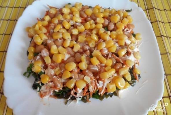 9. На фасоль посыпьте немного сладкой кукурузы.