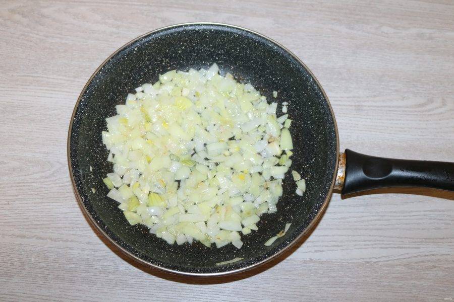 Лук нарежьте кубиками, обжарьте в небольшом количестве масла.
