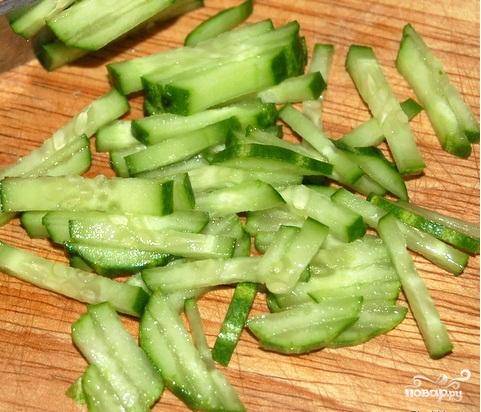 5. Разложить нарезанные огурцы следующим слоем на помидоры.